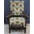 A SUBSTANTIAL CARVED CONTINENTAL WALNUT ARMCHAIR having swept arms and leaf detail to the front rail, on block and turned supports with modern upholstery, 123 cms high, 72 cms wide, 51 cms deep the seat, (worm affected areas)