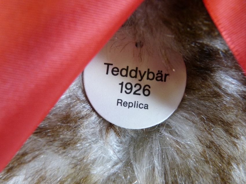 A STEIFF 'BUTTON IN EAR' TEDDY BEAR, 1990/91 'Happy Anniversary' replica of the 1926 bear, limited edition (4771/5000), in original box with certificate, 65 cms long approximately