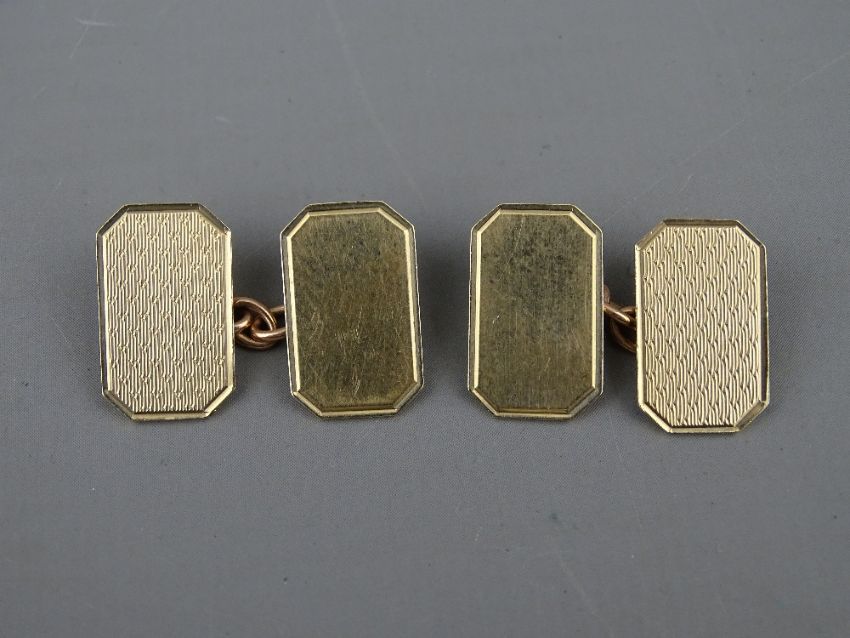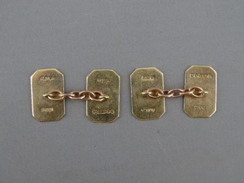 A PAIR OF PLAIN OBLONG NINE CARAT GOLD GENT'S CUFFLINKS, 6.5 grms