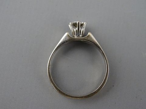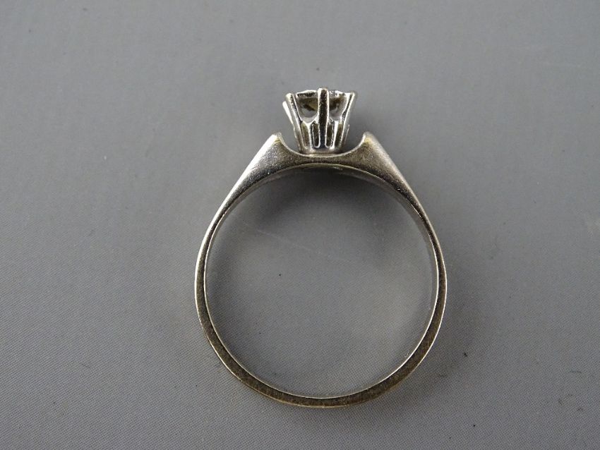 AN EIGHTEEN CARAT WHITE GOLD DIAMOND SOLITAIRE DRESS RING, visual estimate of diamond 0.3 carat, 4 grms gross, size 'O/P'