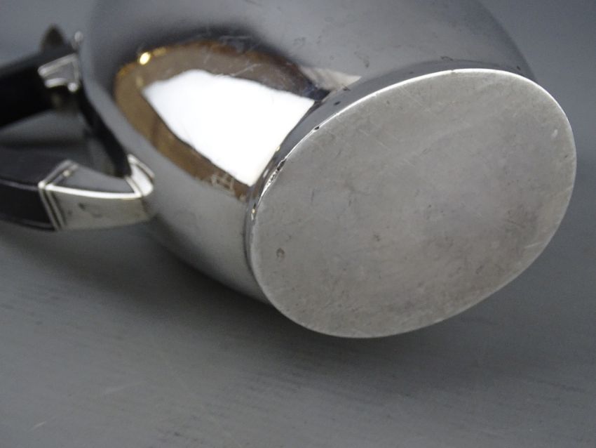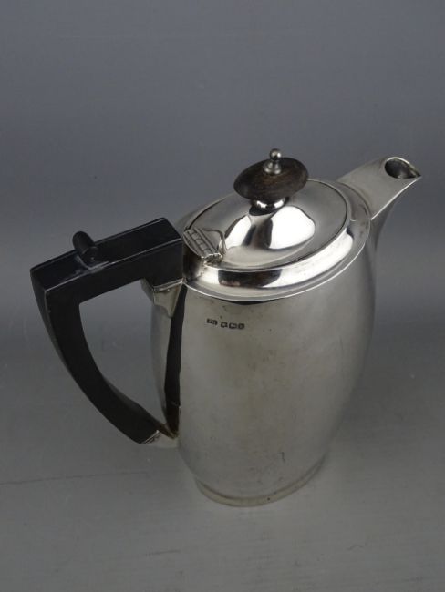 AN OVAL SILVER COFFEE POT of plain form with composition handle and knop, 12.4 troy ozs gross, Sheffield 1927