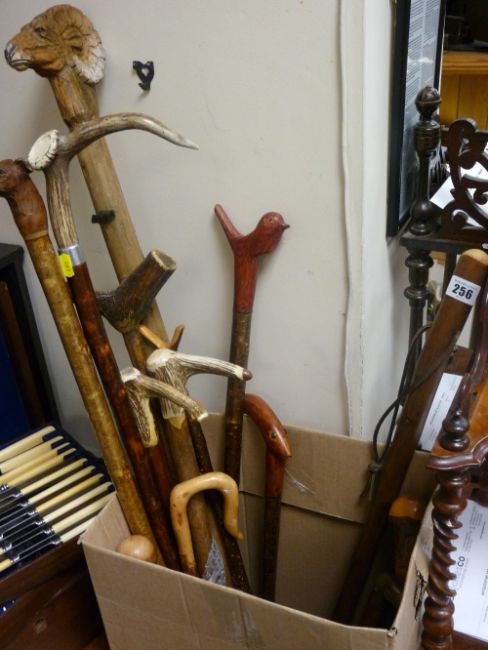 Excellent parcel of assorted sticks, good ram's head carving and similar