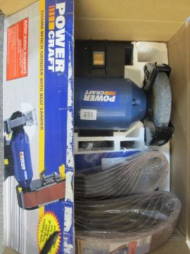 Boxed rarely used Powercraft grinder/belt sander with spare belts E/T