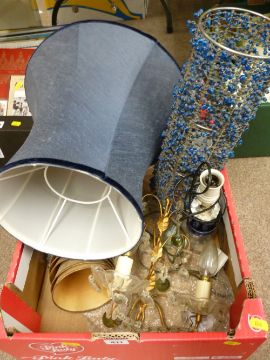 Quantity of vintage and other wall and table lamps along with a quantity of hunt decorated lampshades