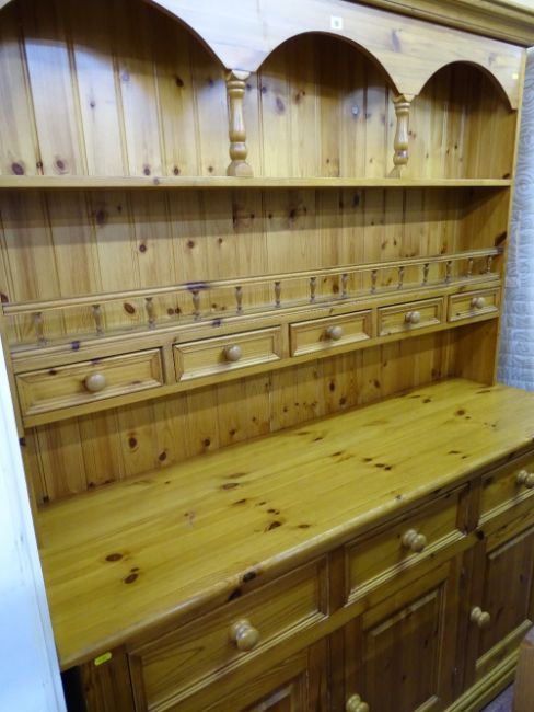 Pine dresser with five spice drawer top and the base having three drawers over three base cupboards
