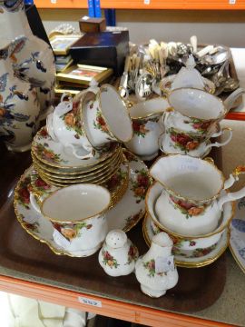 Tray of Royal Albert 'Old Country Roses' teaware ETC