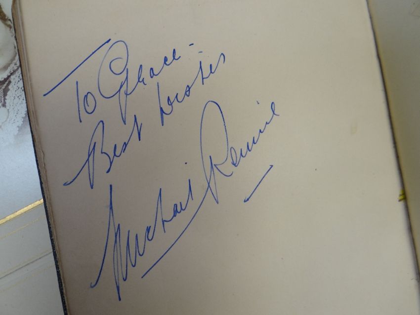 Two Edwardian photo albums with contents, two stamp albums with contents and a vintage autograph book with signatures including David Lloyd George, Michael Rennie, Walter Fitzgerald ETC