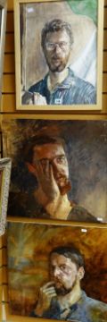 RICHARD O'CONNELL oil on board - self portraits dated 1977 (3) and 1988 (one framed) 48 x 38cms