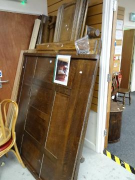An impressive believed nineteenth century oak four-poster bed- mattress not included (please see photograph with bed assembled, currently disassembled) Condition reports provided on request by email for this auction otherwise items purchased `as seen`The bed is unassembled. Looking at the pieces, they all look pretty good, I could not see any damage.The width is approximately 165cms, the length is approximately 220cms and the height is 200cms approximately.I am just measuring the pieces and the posts so not exact measurements.