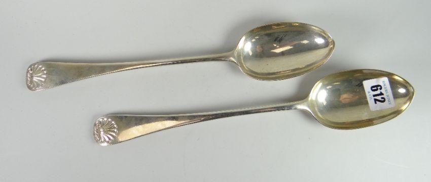 Pair of Victorian silver basting spoons with shell detail, London 1895, makers mark WCJL, 9 troy oz approx. (2)