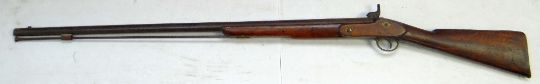Nineteenth century rifle with brass butt and trigger, iron lock plate, seems to be unmarked, 140cms long