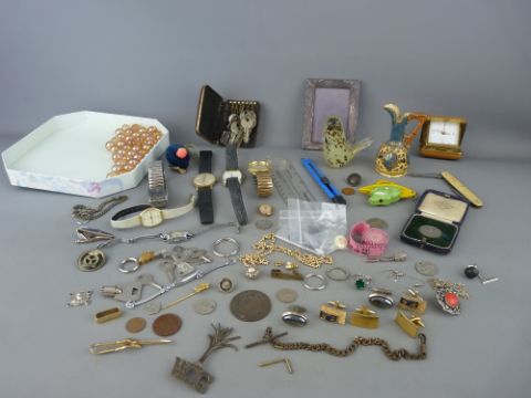 Mixed selection of vintage wristwatches, coinage, cufflinks and various other collectables