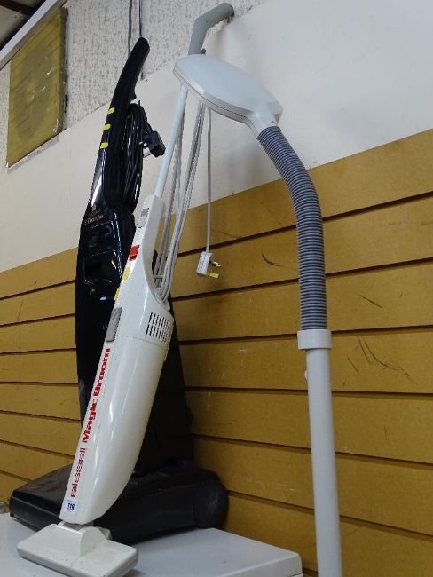 Upright Electrolux vacuum cleaner, Bissell Magicbroom and modern standard lamp E/T