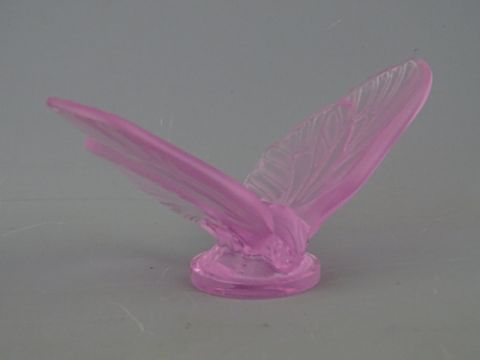 Lalique glass butterfly/moth ornament, etched to the reverse 'Lalique, France', 11 cms wide, coloured pink