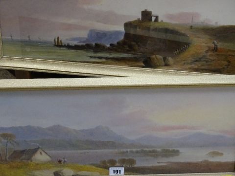 Style of SARAH L KILPACK oils on board, a pair - 'Martello Tower on the Coast', 22 x 50 cms