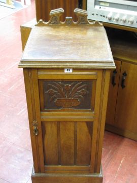 Oak bedside pot cabinet with carved detail