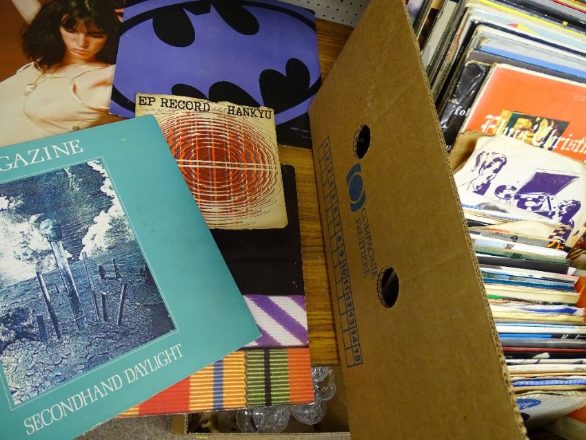 Box of 60s/70 LP and 45rpm records including Pink Floyd, Prince, Joni Mitchell, Patti Smith, Jefferson Airplane and similar
