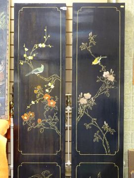 Four fold hand painted and mother of pearl inlaid Oriental dressing screen