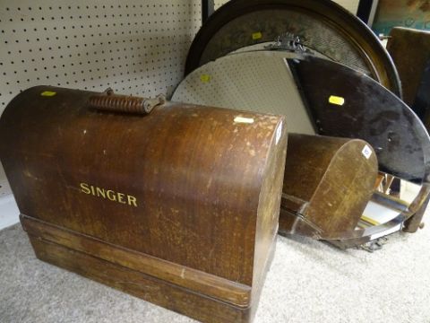 Cased Singer sewing machine, quantity of good vintage mirrors and an oval tapestry