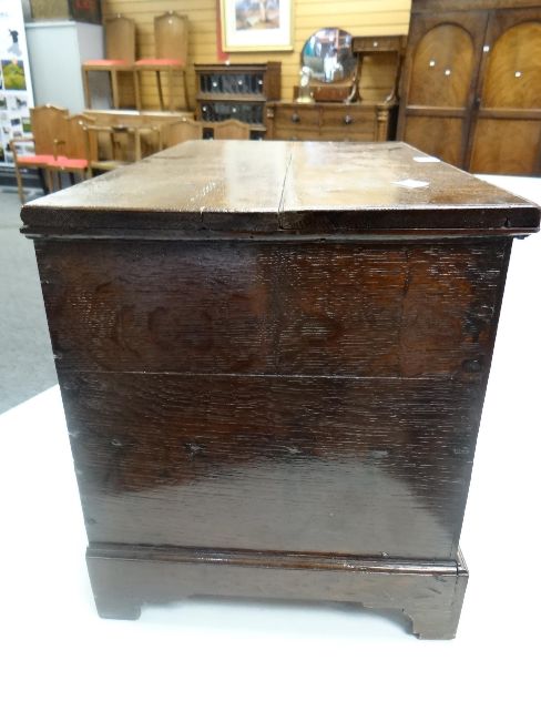 An antique nineteenth century Welsh oak coffer-bach chest with single drawer on bracket feet and with brass mounts, 54cms wide x 32cms deep x 37cms high
