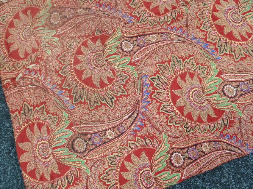 An antique red and green paisley patterned quilted throw / blanket, 203 x 173cms