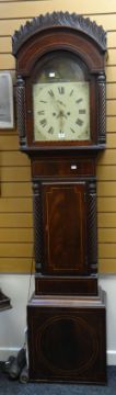A Victorian inlaid mahogany encased painted dial maritime longcase clock bearing Roman numerals and subsidiary dials, 219cms high
