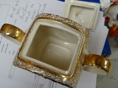 A PARCEL OF MIXED TEAWARE including Midwinter, Shelley, Royal Albert and Sadlerregarding the Sadler teaset. There is lots of gild wear all three pieces. There are a few hairline cracks inside the teapot at the bottom and a few small ones around the handle. The other two pieces look good