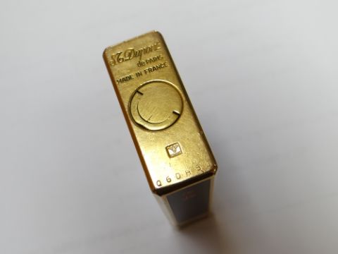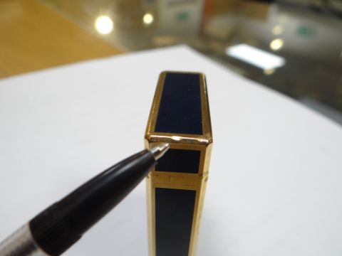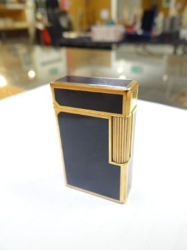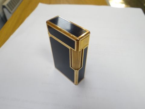 LIGHTER BY S J DUPONT of Paris, a Lacque de Chine rose gold-plated pocket lighter, 1970's, in black enamel, with small red Chinese character marks, no. 06DH53, with original box and paperwork There are a couple of very small ding to the lid. There is also one corner knock.There are some very light surface scratches hardly noticeable.The case has minor shelf wear.