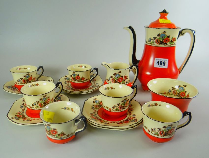 A FIFTEEN PIECE WEDGEWOOD 'MAXINE' VINTAGE COFFEE SET with Wedgewood unicorn mark to the base