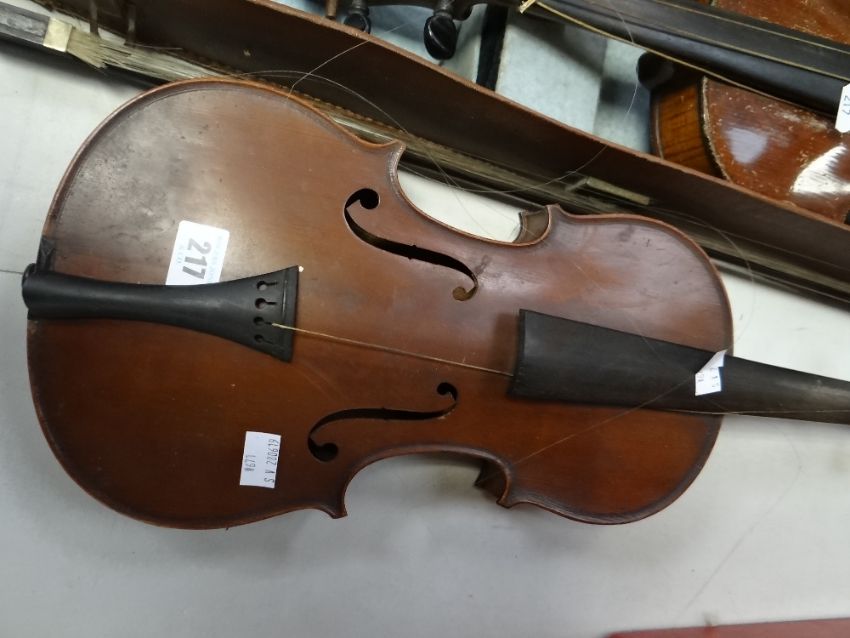 TWO VINTAGE VIOLINS, one cased