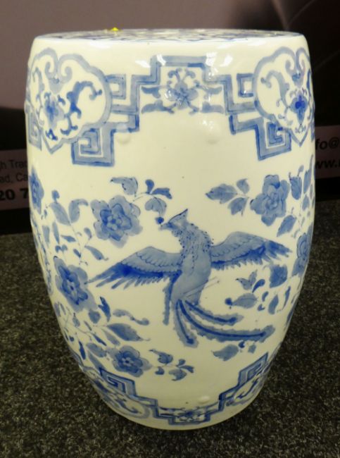 MODERN CHINESE BLUE & WHITE GARDEN SEAT of fish tank stand, 46cms high