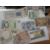 A TOFFEE BOX CONTAINING A LARGE QUANTITY OF LOOSE COINAGE AND BANKNOTES