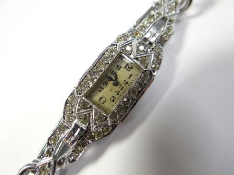 PASTE JEWELLERY a collection of early twentieth century paste costume jewellery set with near-colourless paste, a including an American Art Deco double-clip brooch, cocktail watch ETCmost pieces have missing stones