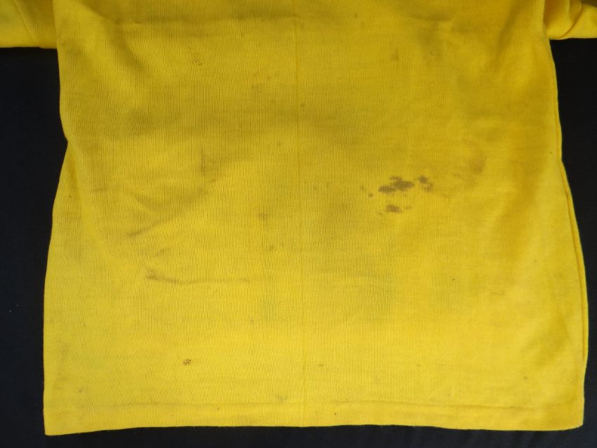 Provenance: entered directly from Belgium by female Belgian vendor who was 20 years old in 1974. The vendor's father was very friendly with Jean Crahay, the driver of the car of a Belgian sports newspaper. Crahay became good friends with Eddy Merckx and fellow Belgian cyclist Joseph Bruyère, they both gave Crahay yellow jerseys from the tour. The jersey were then in turn gifted to the vendor's father who passed them on to the vendor who was a big fan of Eddy Merckx and the Tour de France at the time