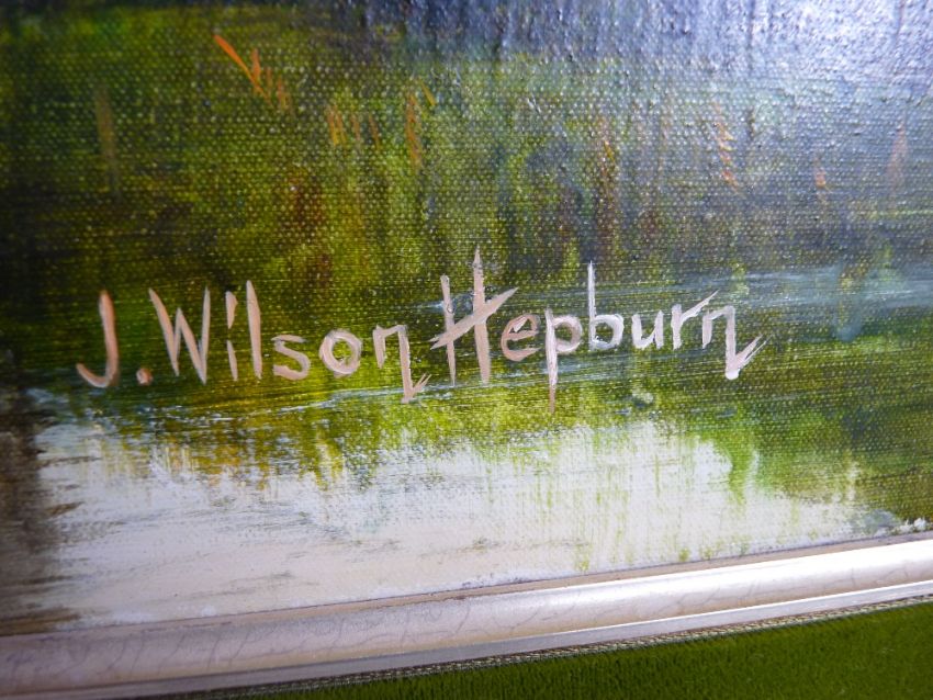 J WILSON HEPBURN oil on canvas - autumnal lakeside landscape, signed, 60 x 90 cms