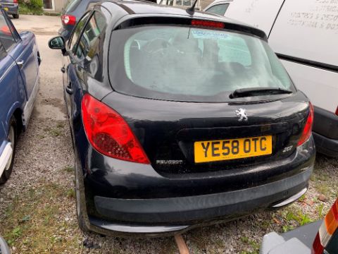 A PEUGEOT FIVE DOOR HATCHBACK CAR, first registered 2008, petrol, 1397cc, registration number YE58 OTC, mileage approximately 55,000, black, twelve months MOT