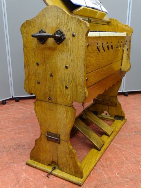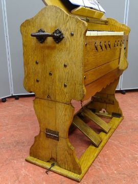 R F STEVENS MODEL 25 PORTABLE ORGAN, a compact and quirky model with folding legs for transportation, various literature included, 81 cms high, 81 cms wide