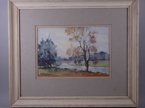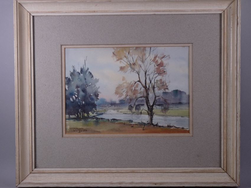 GERALD V GADD watercolour - riverside scene, 17 x 25 cms