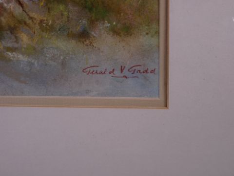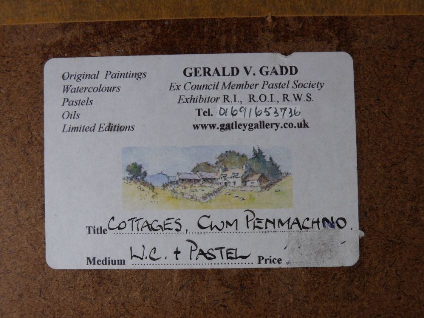 GERALD V GADD watercolour and pastel - row of North Wales quarry cottages, signed, 26 x 38.5 cms