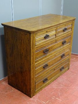 AN EDWARDIAN CHEST of two short over three long drawers, 95 cms wide, 51 cms deep, 91 cms high