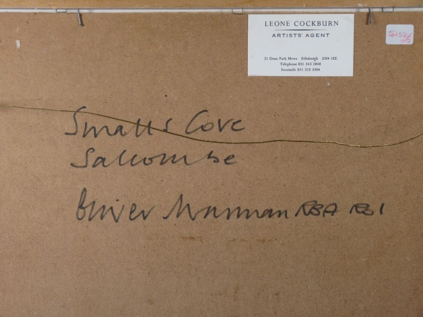 OLIVER WARMAN (a Welsh Guardsman) RBA ROI, oil on board - rocky coastal scene with figures, signed with initials, 28 x 38 cms