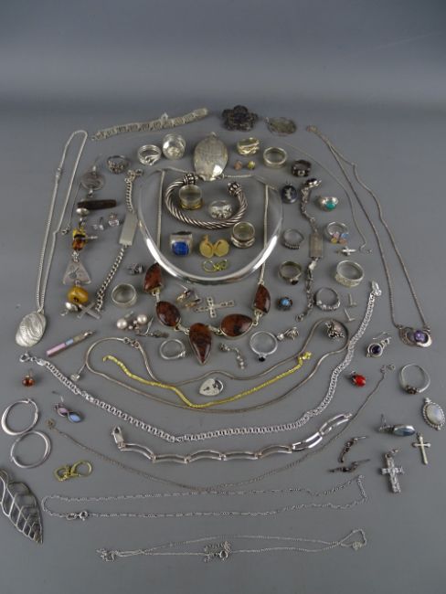 A good selection of silver and white metal jewellery and rings over 5 troy ozs of weighable sterling etc