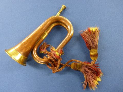 Copper and brass Army bugle by Henry Potter & Co, Charing Cross Road, London, dated 1909