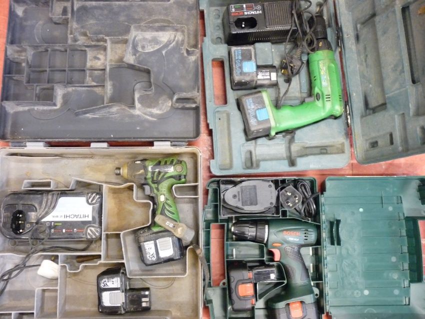 Three cased cordless power tools with chargers E/T