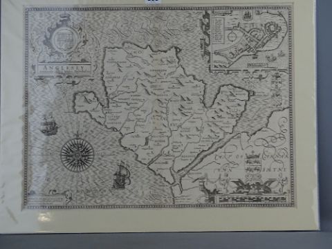 JOHN SPEED map of Anglesey, double page engraving, uncoloured and unframed, sellers Thomas Bassett and Richard Chiswell, dated 1610, 39 x 51.5 cms