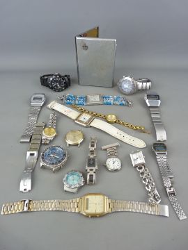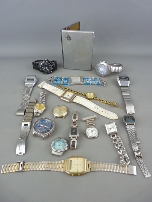 Mixed collection of lady's and gent's wristwatches and a vintage white metal cigarette case