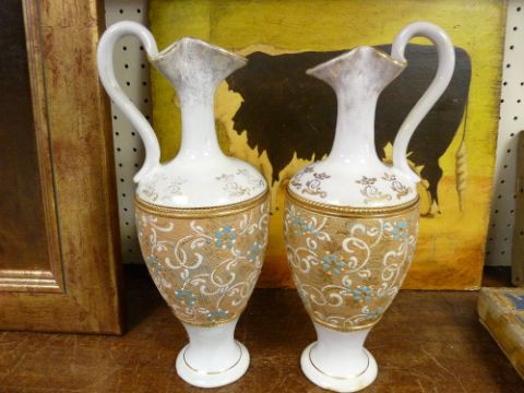 Pair of Doulton Slaters lace pattern vases, 28 cms high