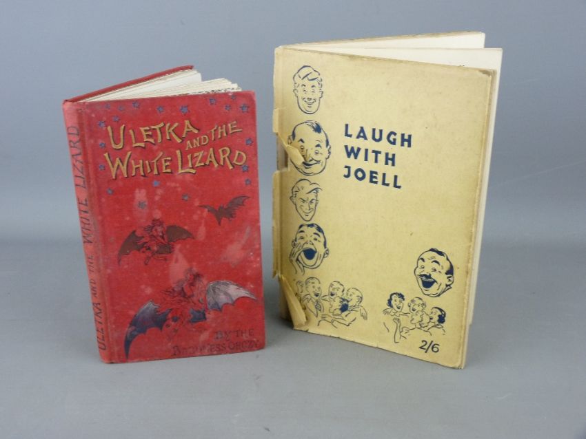 Books - 'Uletka & The White Lizard' by the Baroness Orczy & Mantagu Barstow, published by Deane & Son Ltd and 'Laugh With Joell', printed by Abraham & Sons Ltd, dated 1944