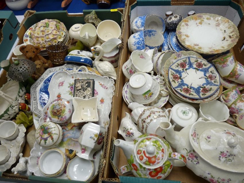 Two mixed boxes of decorative pottery, porcelain and vintage teaware