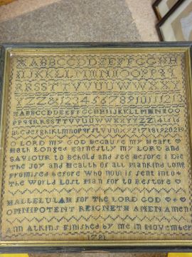 George III needlework sampler, single colour alphabet and verse by Ann Atkins, dated 1791, 27.5 x 26 cms